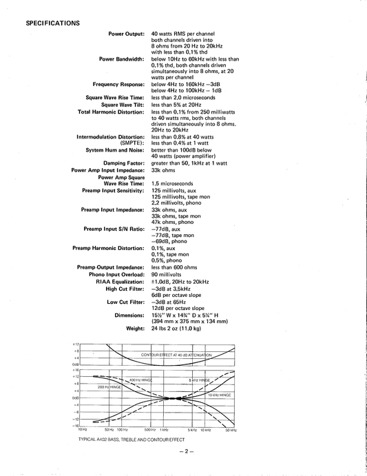Harman/ Kardon A-402 Amplifier/ Preamplifier Owner & Service Manual (Pages: 50)