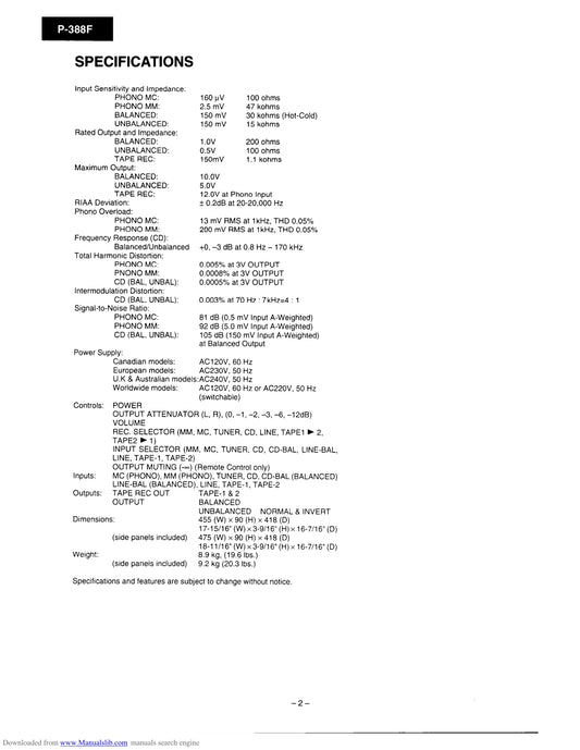 Onkyo P-388F Stereo Preamplifier Service Manual (Pages: 18)