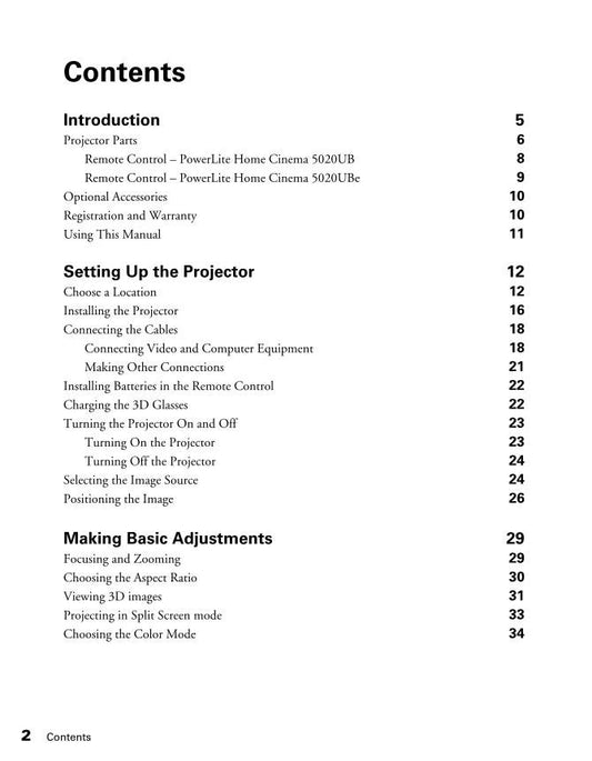 Epson Powerlite Home Cinema 5020UB Powerlite Home Cinema 5020UBe Projector Operating Manual