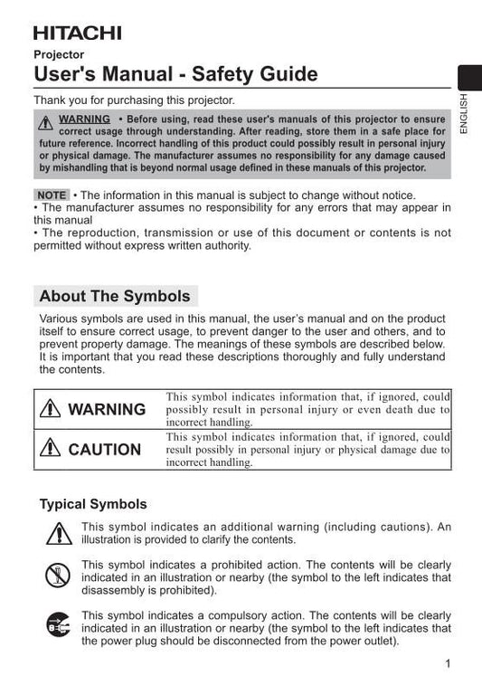 Hitachi PJTX200 PJTX200J Projector Operating Manual
