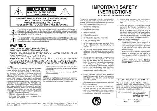 Marantz VP-12 S 1 DLP Projector Owner/ User Manual (Pages: 30)