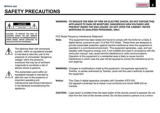 Toshiba W412 W415 W412C Projector Operating Manual