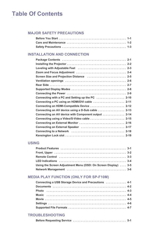 Samsung SPF10 SPF10M Projector Operating Manual