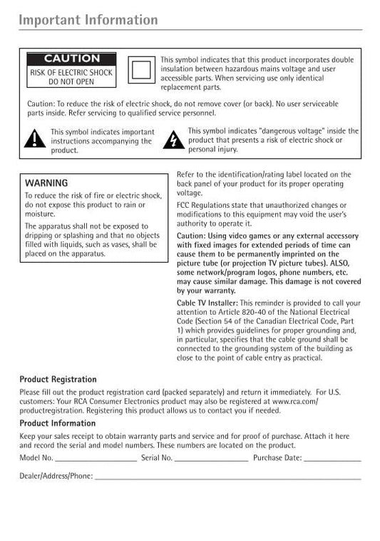 Explore RCA TV, cable, DVD, and home audio/video service and operating manuals, available as downloadable PDFs and binded copies. Our detailed guides provide setup instructions, troubleshooting tips, and maintenance advice to ensure your RCA devices perform at their best. Browse our collection today to find the perfect manual for your model.