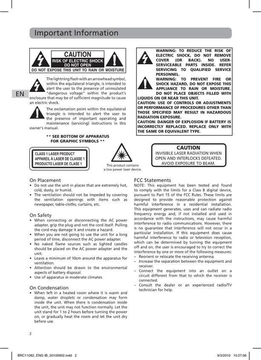 RCA BRC11082 Blu-Ray DVD Player Operating Manual