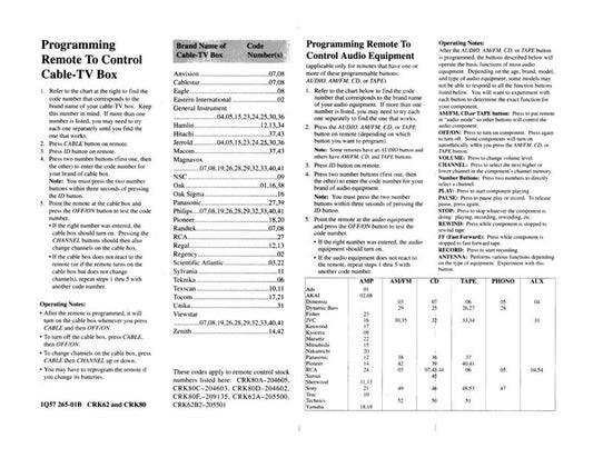 RCA CRK62 CRK80OM Universal Remote Control Operating Manual