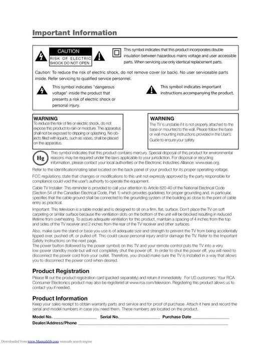 Explore RCA TV, cable, DVD, and home audio/video service and operating manuals, available as downloadable PDFs and binded copies. Our detailed guides provide setup instructions, troubleshooting tips, and maintenance advice to ensure your RCA devices perform at their best. Browse our collection today to find the perfect manual for your model.