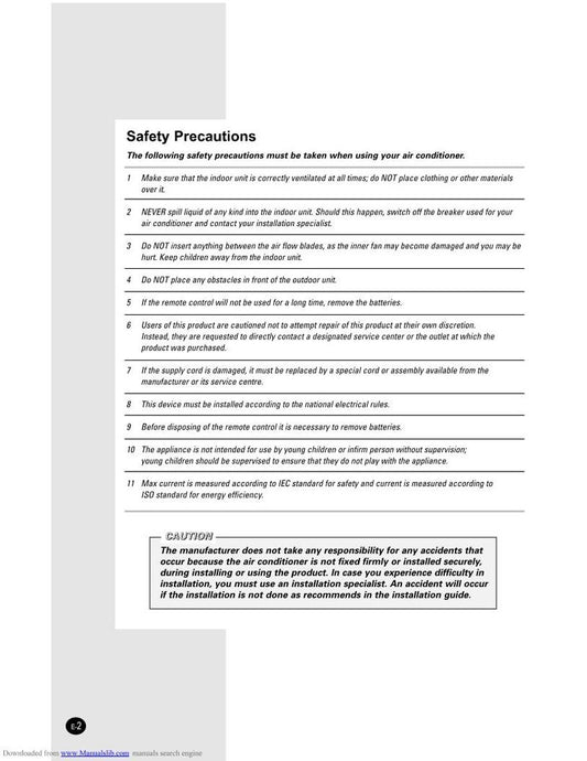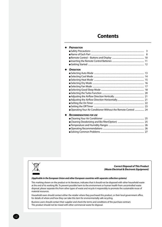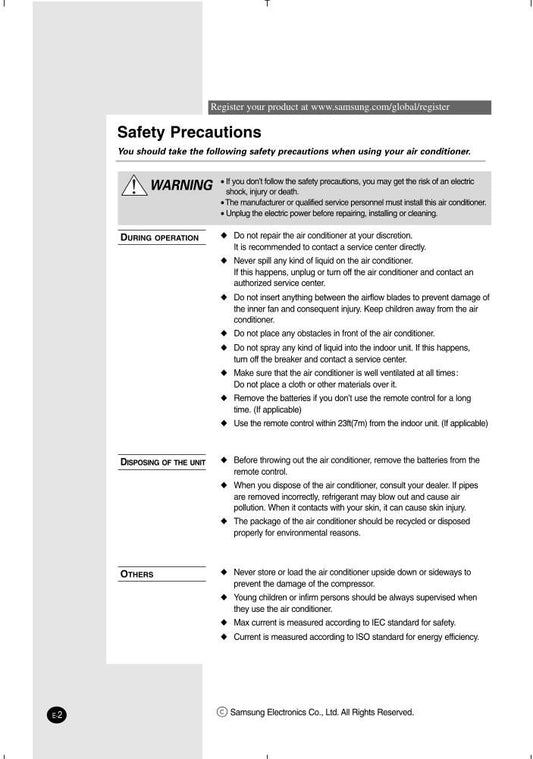 Samsung AM27 B1 C13 Air Conditioner Unit Operating Manual