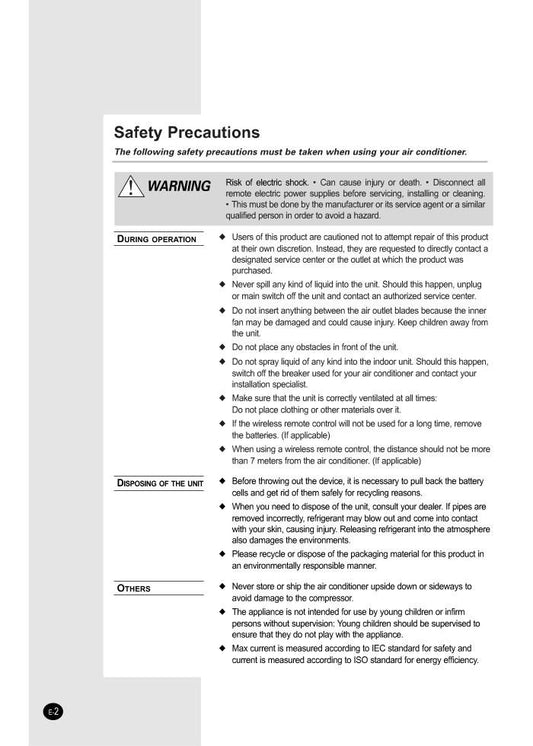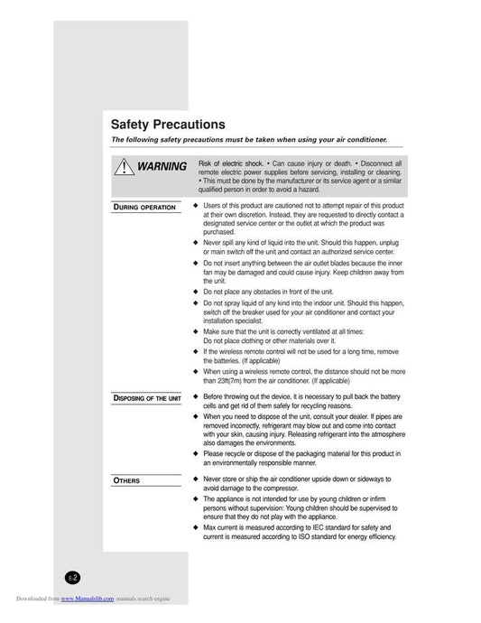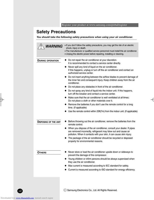 Samsung ARH1410 Air Conditioner Unit Operating Manual
