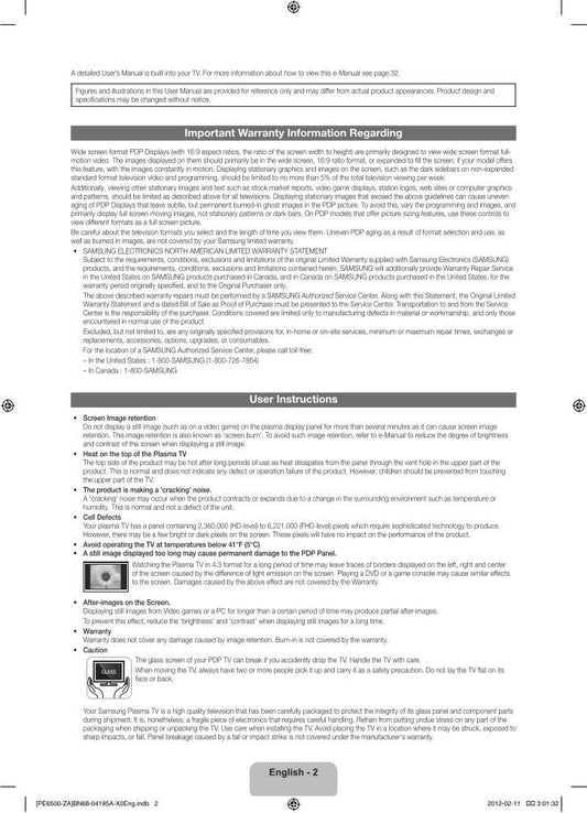 Samsung 400UX 400UXUD 460UX TV Operating Manual