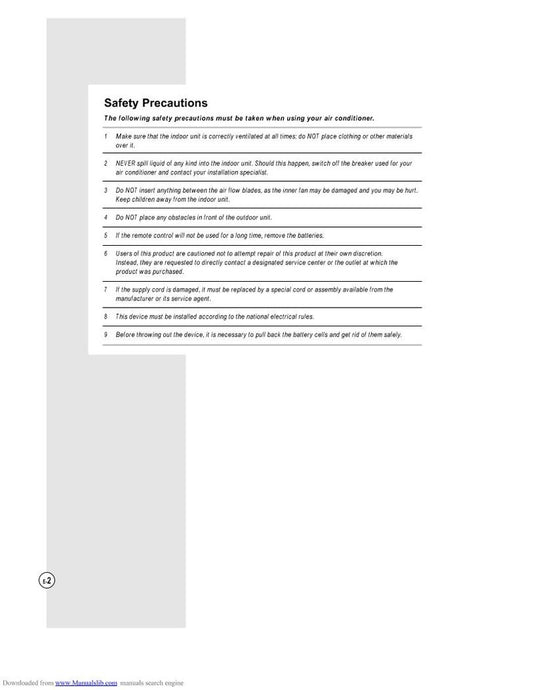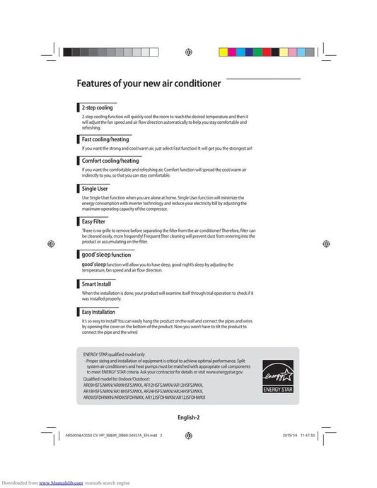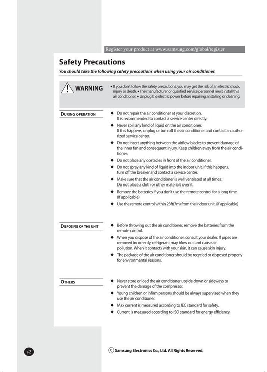 Samsung AR12 JSFDHWKN Air Conditioner Unit Operating Manual