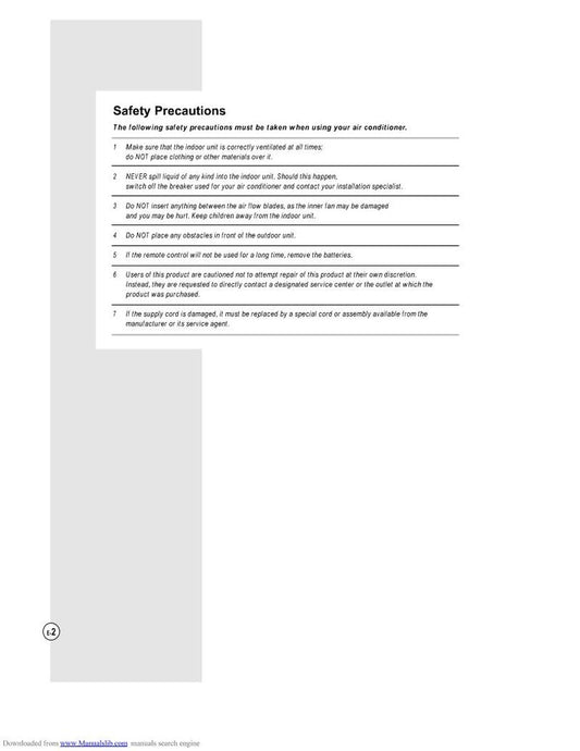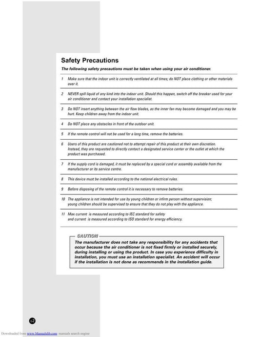 Samsung AQB12 JJWC/KCV Air Conditioner Unit Operating Manual