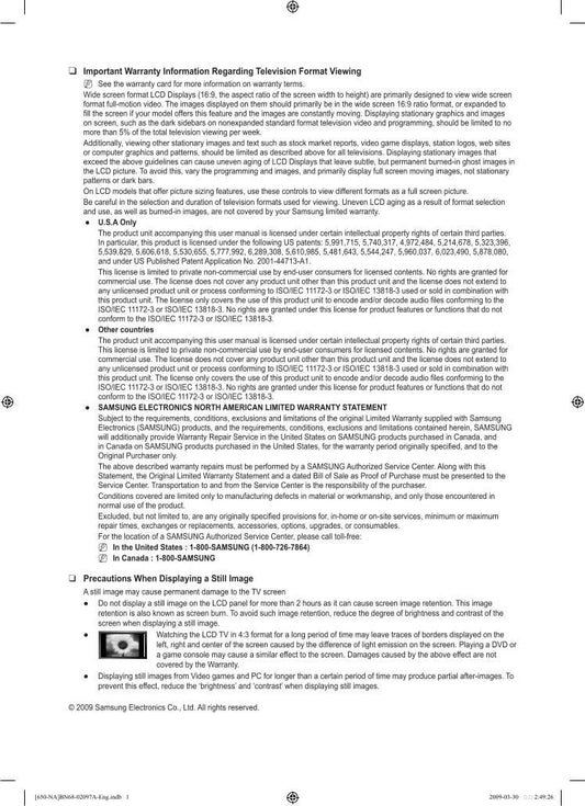 Samsung LN52A650A1F TV Operating Manual