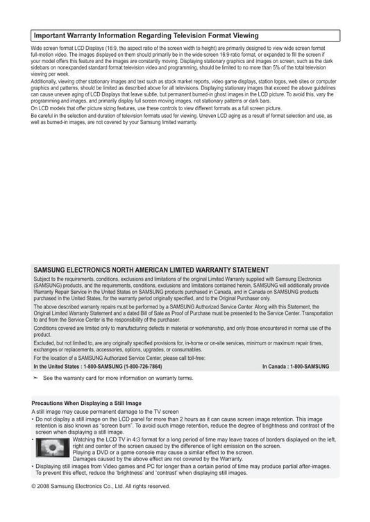 Samsung LN40D630 LN46D630 TV Operating Manual