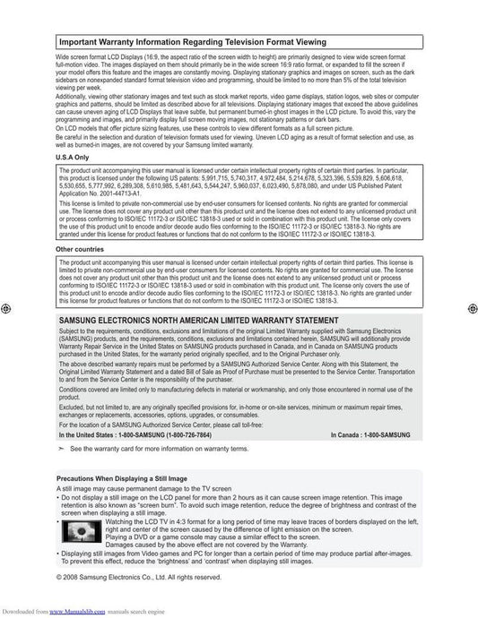 Samsung LN52A630M1FXZASQ01 TV Operating Manual
