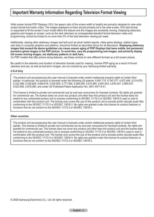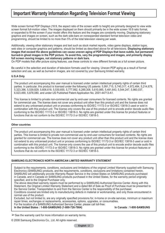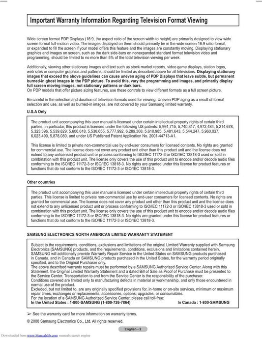 Samsung PN42A410 PN50A410 TV Operating Manual