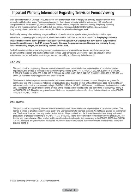 Samsung PN42A400 PN50A400 TV Operating Manual
