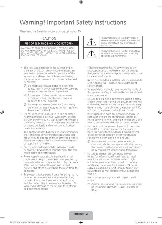 Samsung UN40JU6500FXZA UN40JU650D UN40JU650DFXZA TV Operating Manual