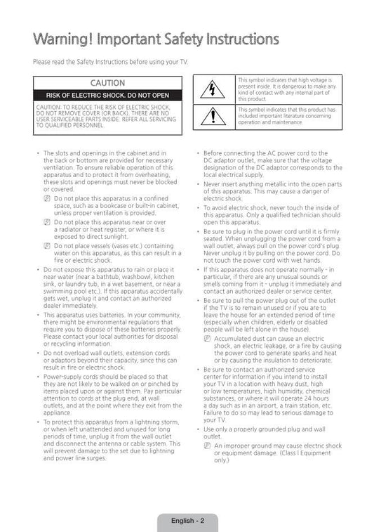 Samsung UN32J5500AFXZA UN32J550D UN32J550DAFXZA TV Operating Manual