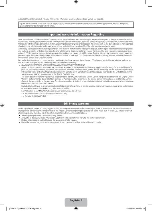 Samsung UN50ES6100FXZA TV Operating Manual