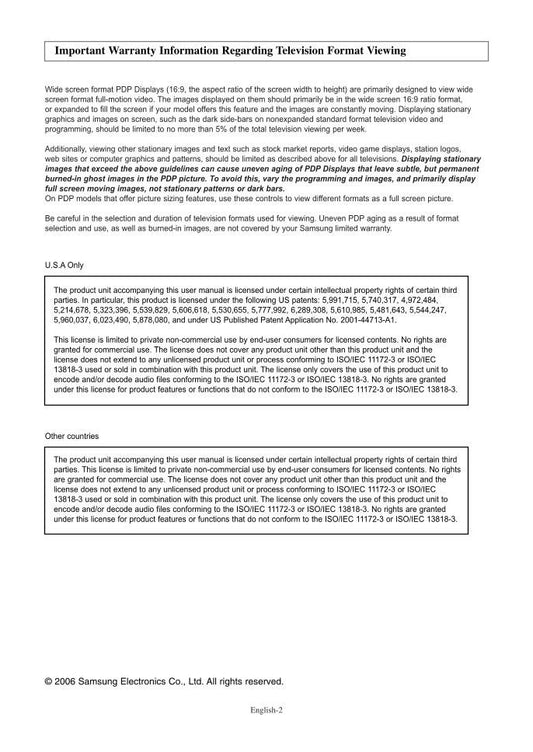 Samsung HLT6176SX/XAA HLT6187SX/XAA HPS4253X/XAC TV Operating Manual
