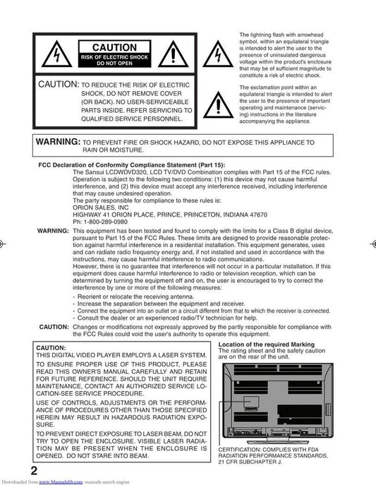 SANSUI HDLCDVD325B TV/DVD Combo Operating Manual