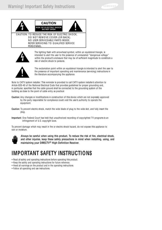 Samsung SIRTS160 Satellite Receiver Operating Manual