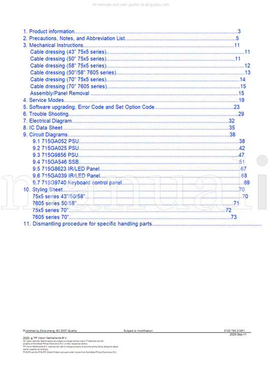 Philips 43PUS7505 43PUS7555 NT72671 50PUS7505 58PUS7605 50PUS7555 (76 pages) TV Service Manual
