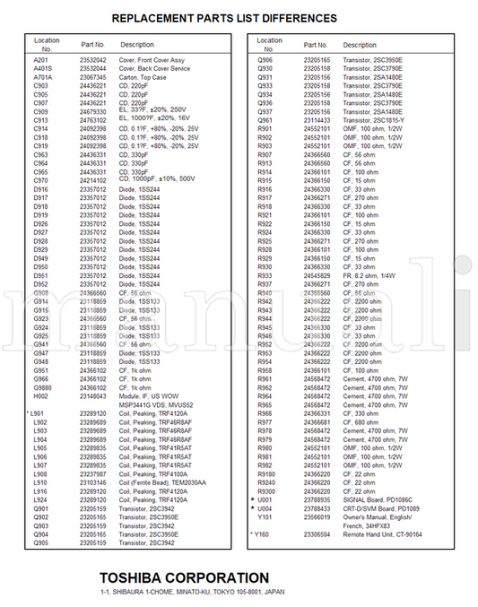 Toshiba 030-200301 6ZP38B 32ZP38B (158 pages) TV Service Manual
