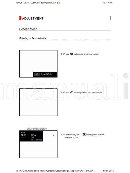 Toshiba 32P1300D (66 pages) TV Service Manual