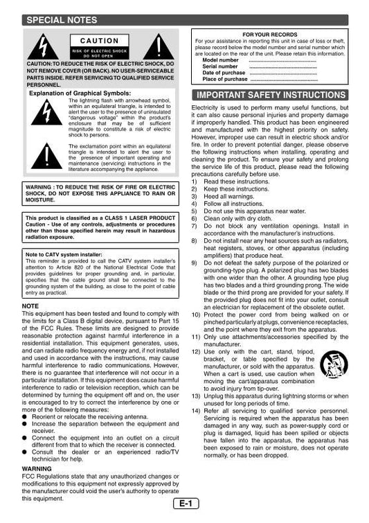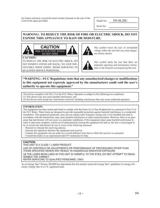Sharp DVSL20 DVD Player Operating Manual