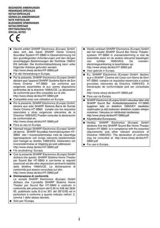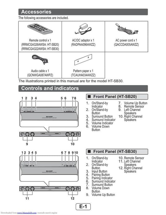 Sharp HT-SB30 Audio System Operating Manual