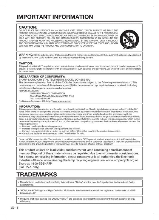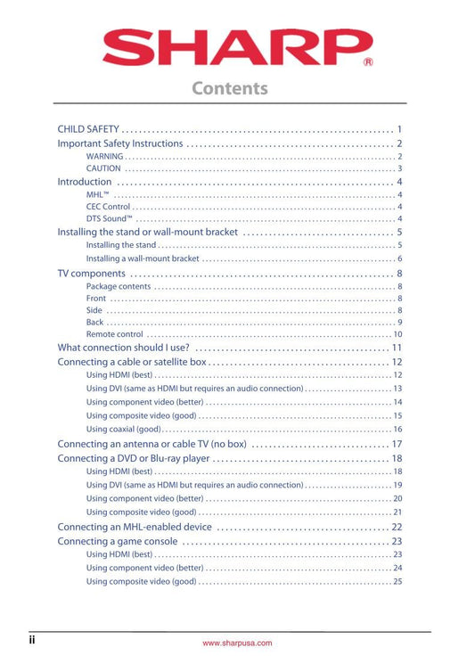 Discover Sharp TV, home audio, and video electronics service and operating manuals, available as downloadable PDFs and binded copies. Our comprehensive guides provide setup instructions, troubleshooting tips, and maintenance advice to ensure your Sharp devices perform optimally. Browse our collection today to find the perfect manual for your model.
