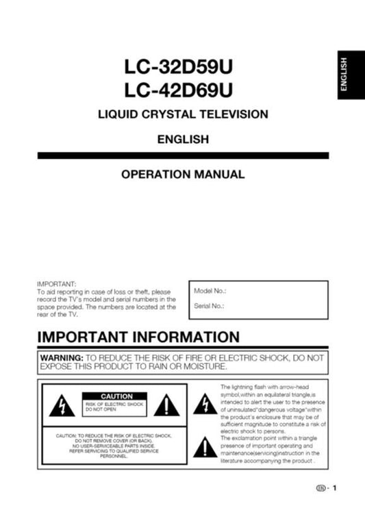 Sharp LC32D59U LC42D69U TV Operating Manual