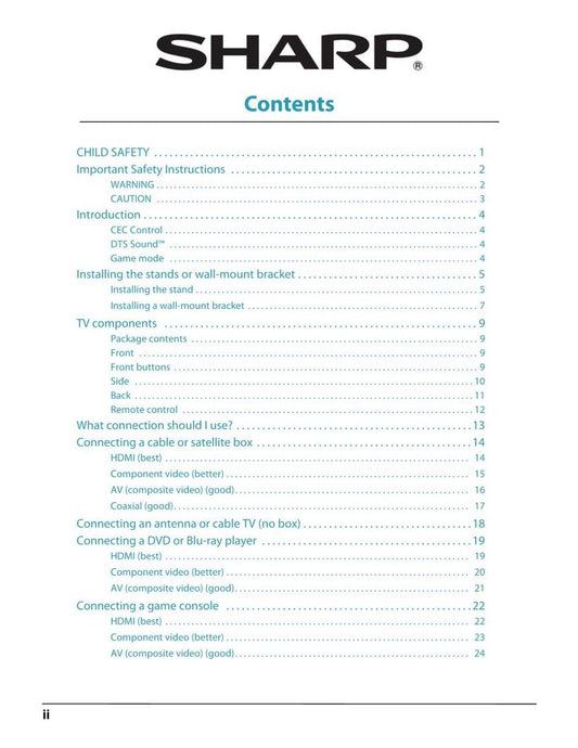 Discover Sharp TV, home audio, and video electronics service and operating manuals, available as downloadable PDFs and binded copies. Our comprehensive guides provide setup instructions, troubleshooting tips, and maintenance advice to ensure your Sharp devices perform optimally. Browse our collection today to find the perfect manual for your model.