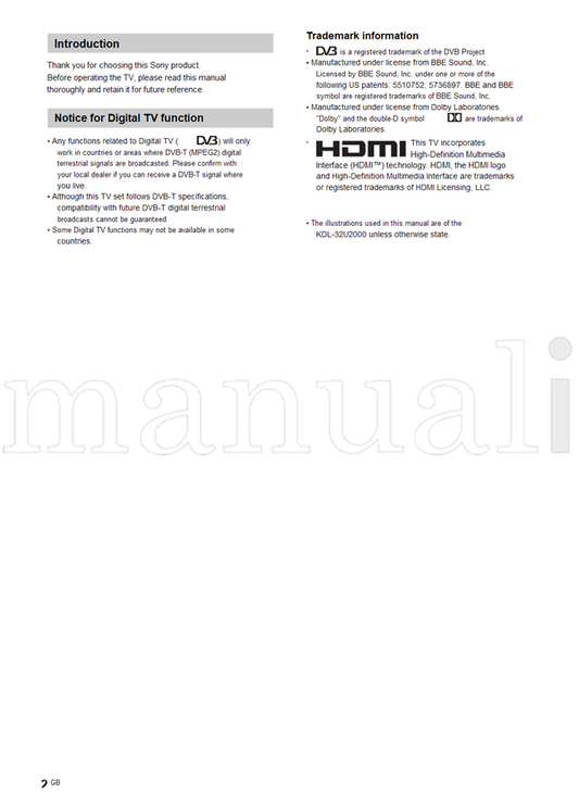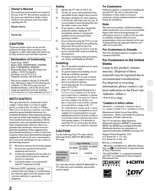 Sony KDL-46S2000 KDL-46S2010 KDL-40S2000 KDL-40S2010 KDL-32S2000 (42 pages) TV Operating Manual