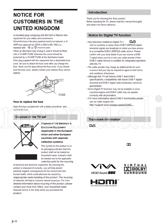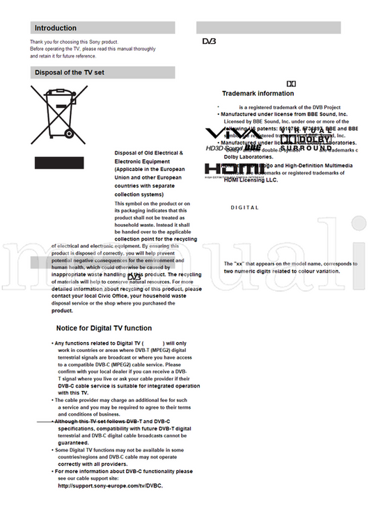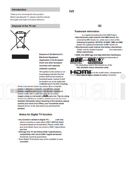 Sony KDL-40P30xx KDL-40U30xx KDL-37P30xx KDL-37U30xx KDL-32P30xx (69 pages) TV Operating Manual