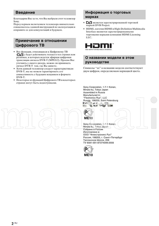 Sony KDL-40P25xx KDL-32P25xx KDL-26P25xx (83 pages) TV Operating Manual