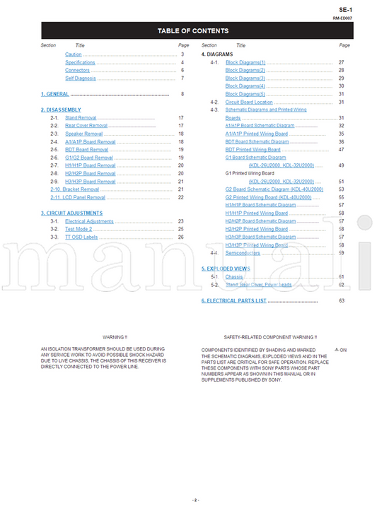 Sony KDL-26U2000 KDL-32U2000 KDL-40U2000 RM-ED007 (90 pages) TV Service Manual