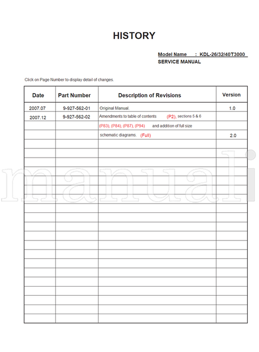 Sony 9-927-562-01 9-927-562-02 KDL-26 40T3000 (136 pages) TV Service Manual