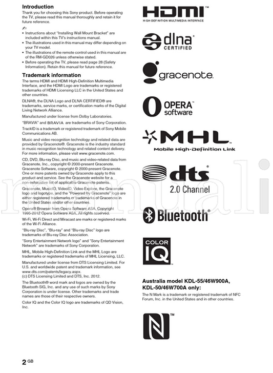 Sony KDL-55W904A 55W900A 50W708A 50W704A 50W700A 46W904A 46W900A (32 pages) TV Operating Manual