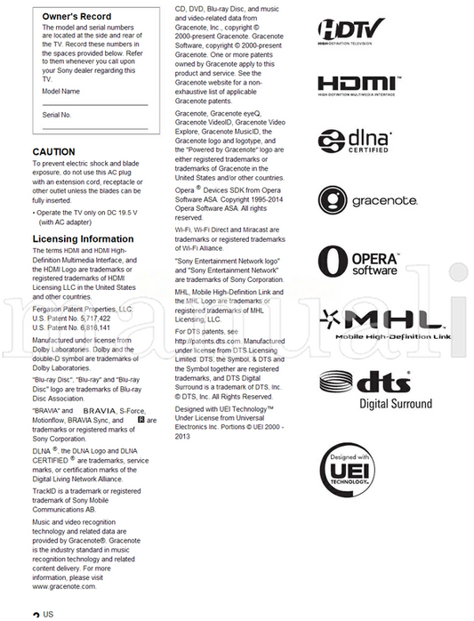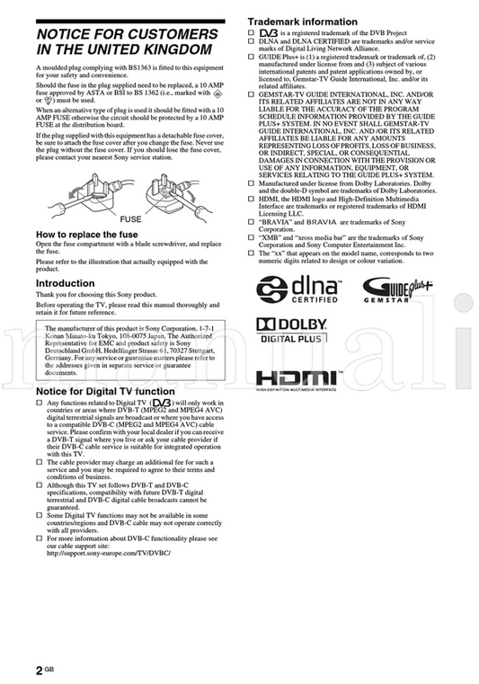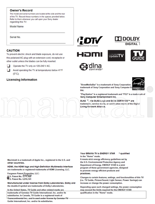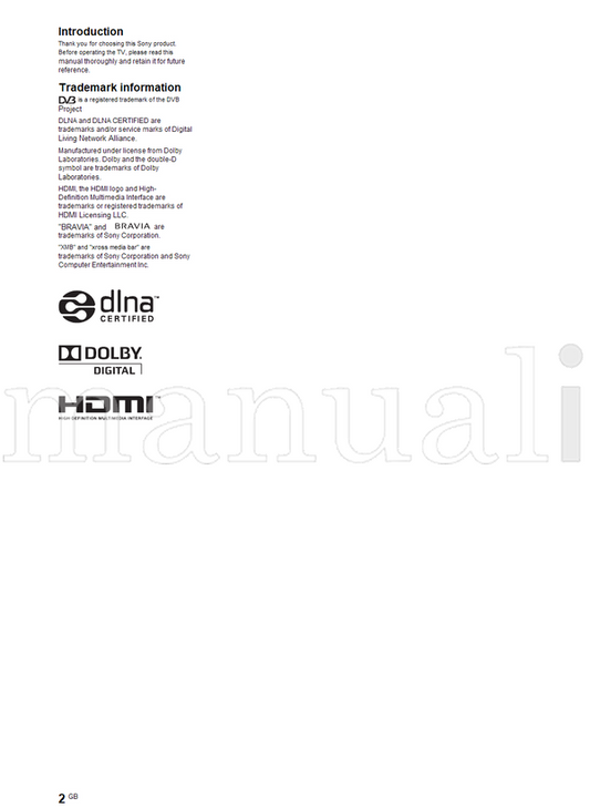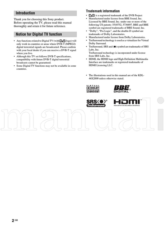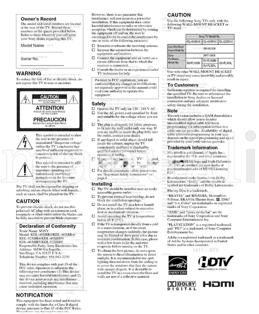 Sony KDL-52X2000 KDL-46X2000 KDL-40X2000 (48 pages) TV Operating Manual