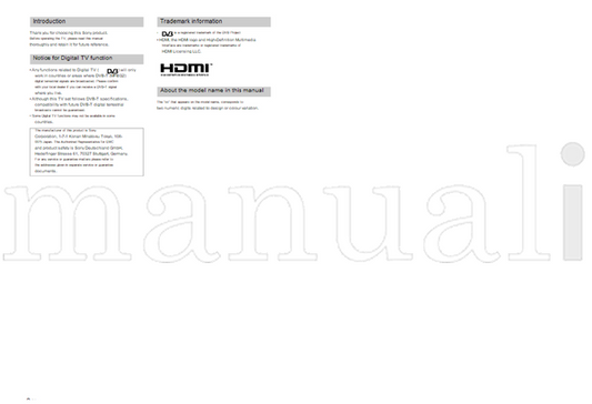 Discover Sony TV, audio, and video electronics service and operating manuals, available as downloadable PDFs and binded copies. Our comprehensive guides provide setup instructions, troubleshooting tips, and maintenance advice to ensure your Sony devices perform at their best. Browse our collection today to find the perfect manual for your model.