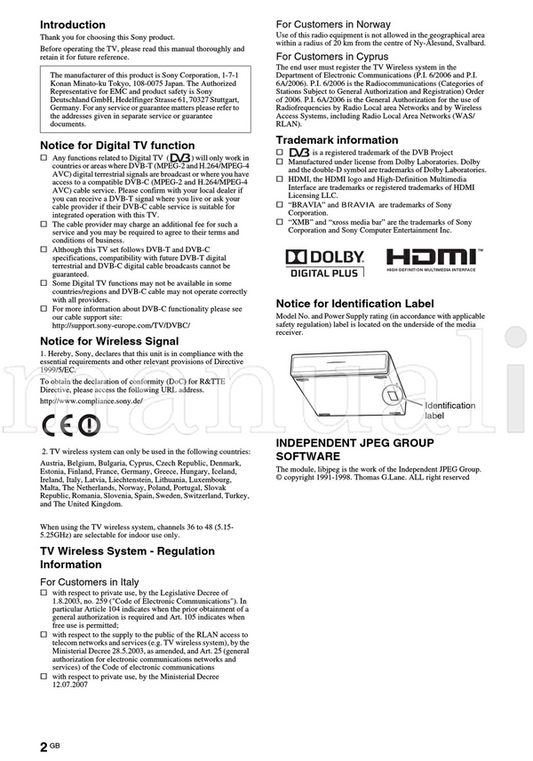 Sony KDL-40P55xx KDL-40S55xx KDL-37P55xx KDL-37S55xx 414145111 (34 pages) TV Operating Manual