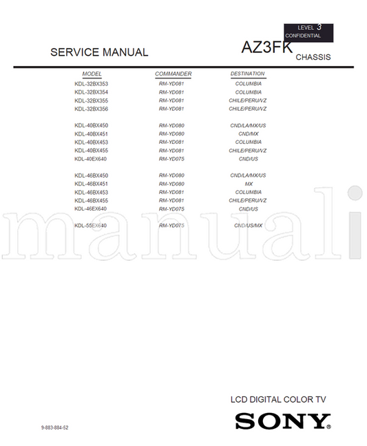 Sony 9-883-884-52 KDL-32BX353 32BX354 40BX453 46BX453 KDL-32BX355 (42 pages) TV Service Manual