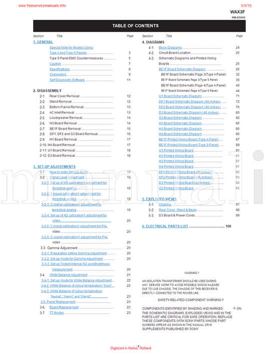 Sony KDL-40D3400 KDL-40D3500 RM-ED009 KDL-46D3500 WAX3F (136 pages) TV Service Manual