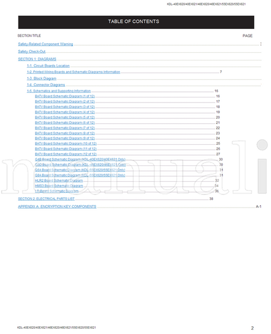 Sony KDL-40EX620 KDL-40EX621 KDL-46EX620 KDL-46EX621 KDL-55EX620 (51 pages) TV Service Manual