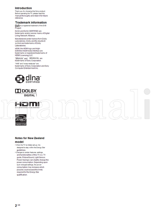 Sony KDL-52NX803 46NX703 40NX803 40NX703 (20 pages) TV Operating Manual