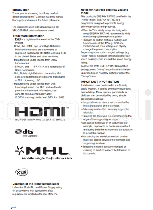 Sony KDL-40R478B 40R470B 32R428B 32R424B 32R420B 32R410B (32 pages) TV Operating Manual