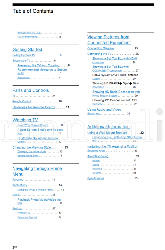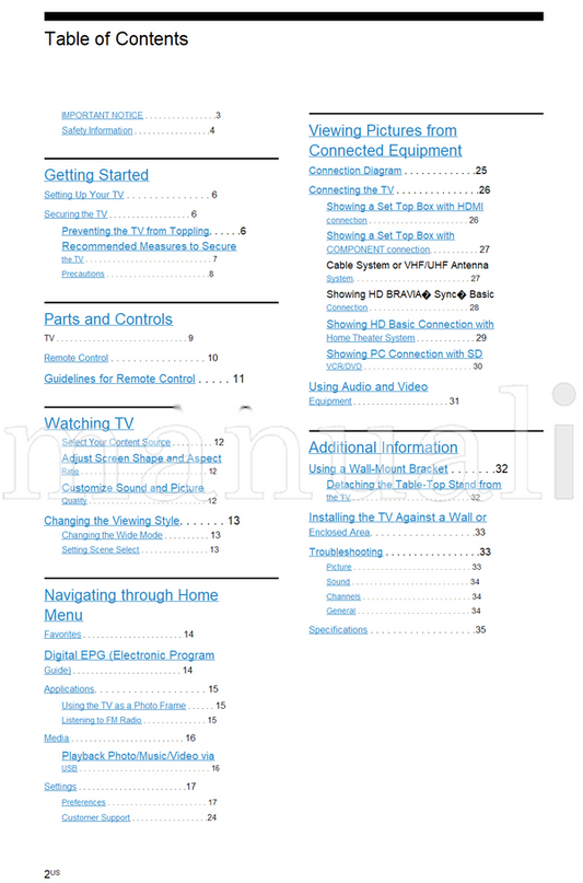 Sony KDL-40S28xx KDL-40T26xx KDL-32S28xx KDL-32T26xx (34 pages) TV Operating Manual